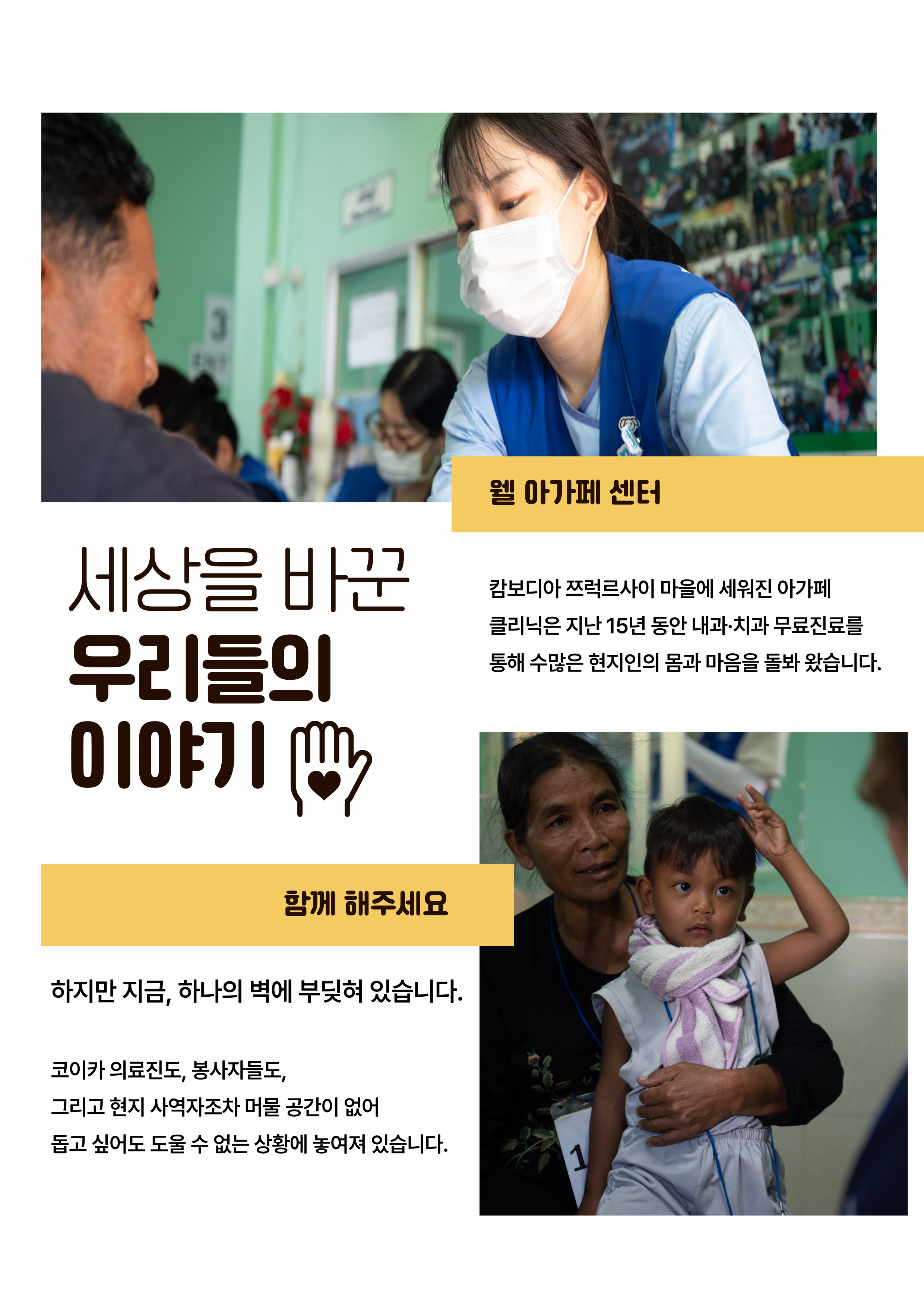 ÇÏÁö¸¸ Áö±Ý, ÇϳªÀÇ º®¿¡ ºÎµúÇô ÀÖ½À´Ï´Ù. ÄÚÀÌÄ« ÀÇ·áÁøµµ, ºÀ»çÀڵ鵵, ±×¸®°í ÇöÁö »ç¿ªÀÚÁ¶Â÷ ¸Ó¹° °ø°£ÀÌ ¾ø¾î µ½°í ½Í¾îµµ µµ¿ï ¼ö ¾ø´Â »óȲÀÔ´Ï´Ù.